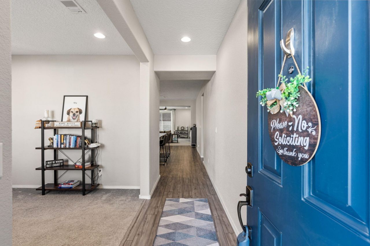 Solar panels paid off at closing, Built just three years ago, this move-in-ready home delivers the modern layout, quality finishes, and energy efficiency you are looking for , without the wait of new construction. Step inside to a bright, open floor plan designed for real life. The kitchen, dining, and living areas flow seamlessly together, creating a space that feels connected, functional, and welcoming. Large windows fill the home with natural light. In addition to the primary bedroom, you'll find two bedrooms plus a dedicated office, a major advantage for remote work, hobbies, or a quiet study space. Outside, the backyard has been beautifully landscaped, creating a polished outdoor living space that's ready to enjoy .Energy efficiency sets this home apart, Green Built Bronze standards.